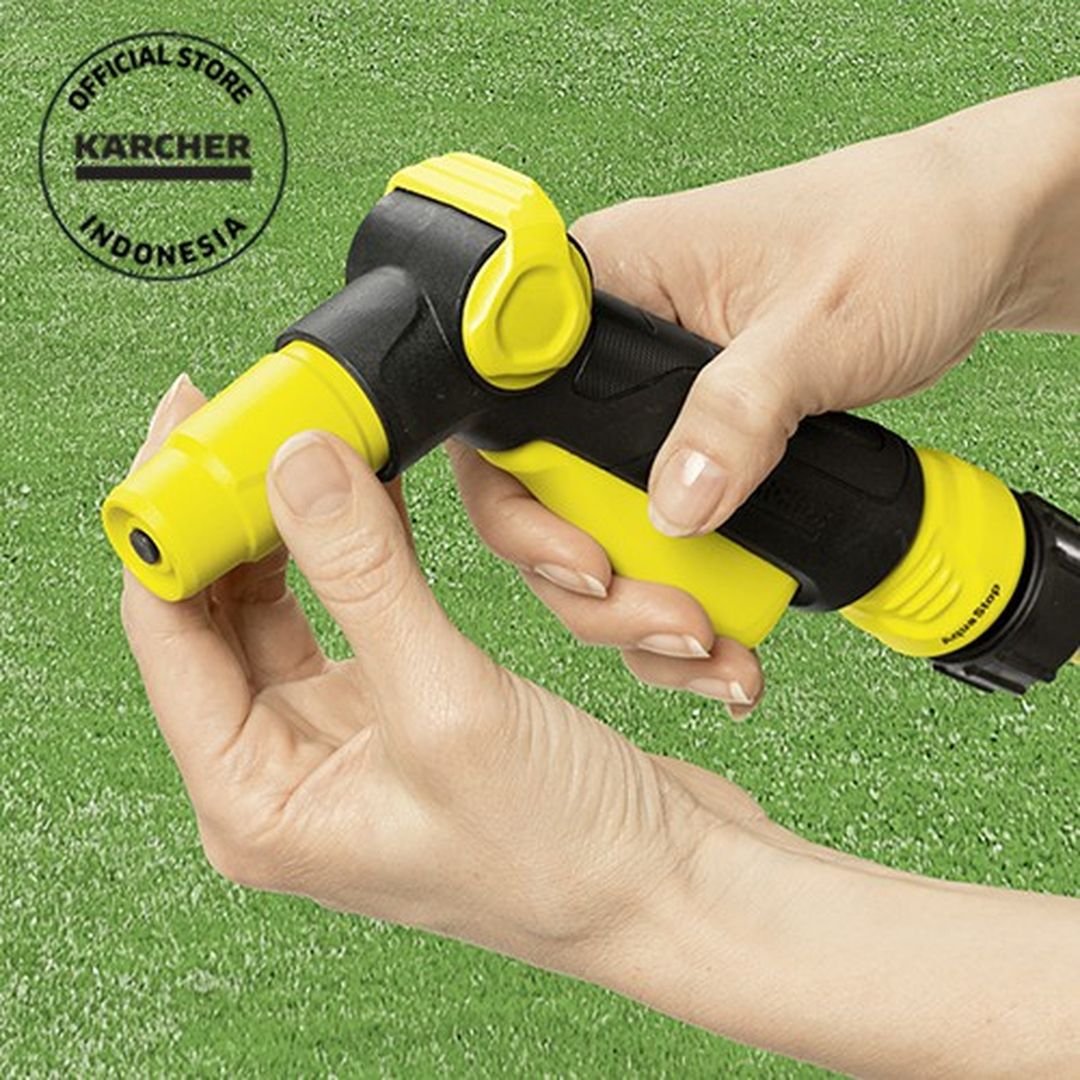 Karcher Spray Gun Nozzle Pistol merupakan semprotan untuk menyiram area kecil dan menengah dan kebun. Pegangan ergonomis memungkinkan pengoperasian satu tangan yang nyaman untuk penyiraman yang mudah dari semua jenis tanaman dan untuk membersihkan peralatan dan furnitur berkebun. Nozzle semprotan menawarkan fitur berguna lainnya, seperti pola semprotan yang dapat disesuaikan dari jet penuh ke semprotan kabut serta kontrol aliran 3 tahap. Pistol juga memiliki kait gantung yang praktis. Pistol menggabungkan desain yang menarik dengan kemudahan penggunaan dan berbagai fungsi yang berguna. Singkatnya: solusi ideal untuk berbagai kegunaan di kebun. Catatan: Nozel semprot Kärcher kompatibel dengan semua sistem klik yang tersedia.
